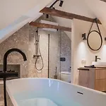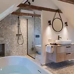Steirerblicke - Traminerhaus Villa comes with a bathroom with a separate toilet and a shower. There are dryers, bath sheets, and slippers for guests' comfort.
